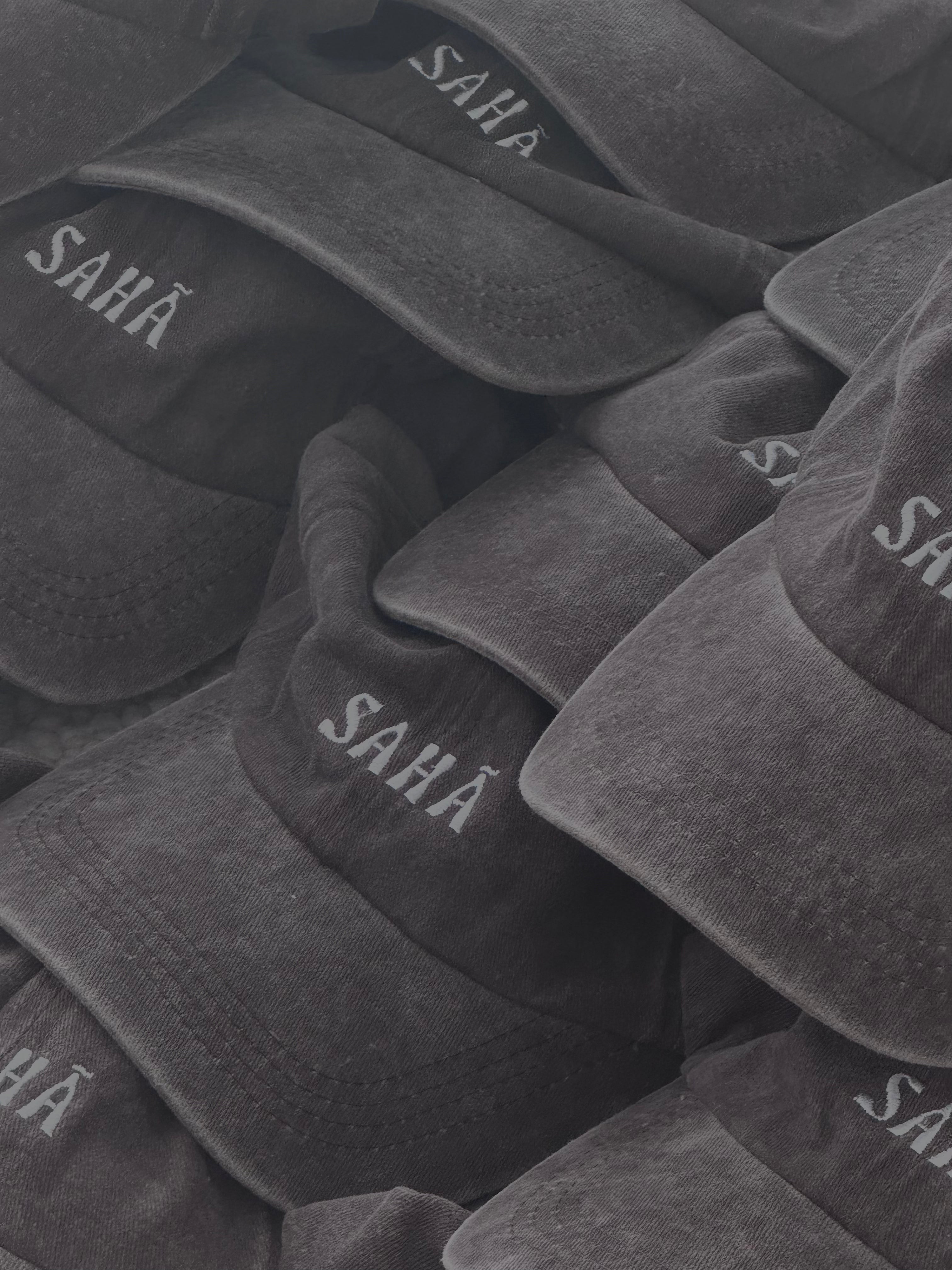 100% cotton in washed coffee with SAHÃ embroidery. Lightweight, adjustable, and designed for effortless daily wear. — a minimal staple that moves with you through every season.